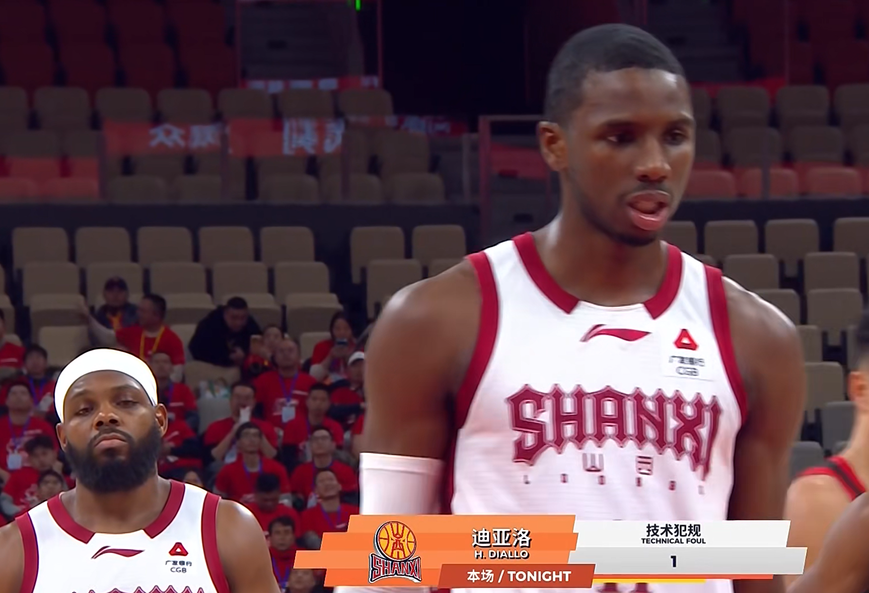 在第二节比赛还有十几秒的时候,山西队外援迪亚洛持球突破上篮,不过,在冲击篮下的过程中,他直接撞到了深圳队球员卢鹏羽,随后,裁判一声哨响,吹罚了迪亚洛一个进攻犯规,面对裁判的这个吹罚,潘江十分不满意,直接冲进了场内,对着裁判一顿咆哮,一怒吼……对于潘江如此激动,裁判也是不客气,给他送上了一个技术犯规。